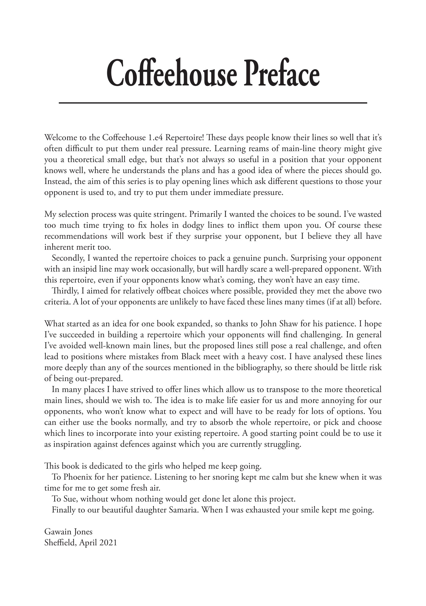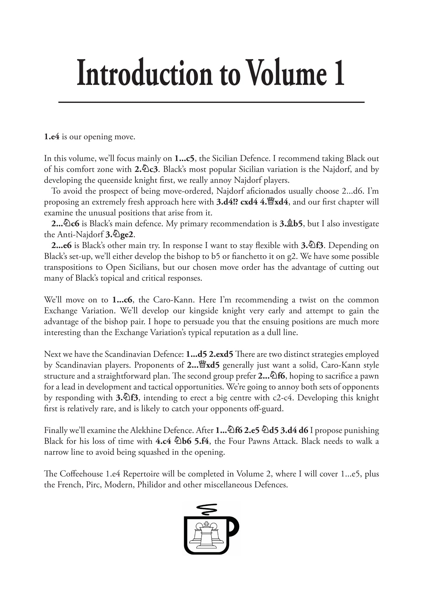 Il repertorio Coffeehouse 1.e4 sarà completato nel secondo volume, che comprende 1...e5, oltre alle difese Francese, Pirc, Moderna, Philidor e altre difese varie.