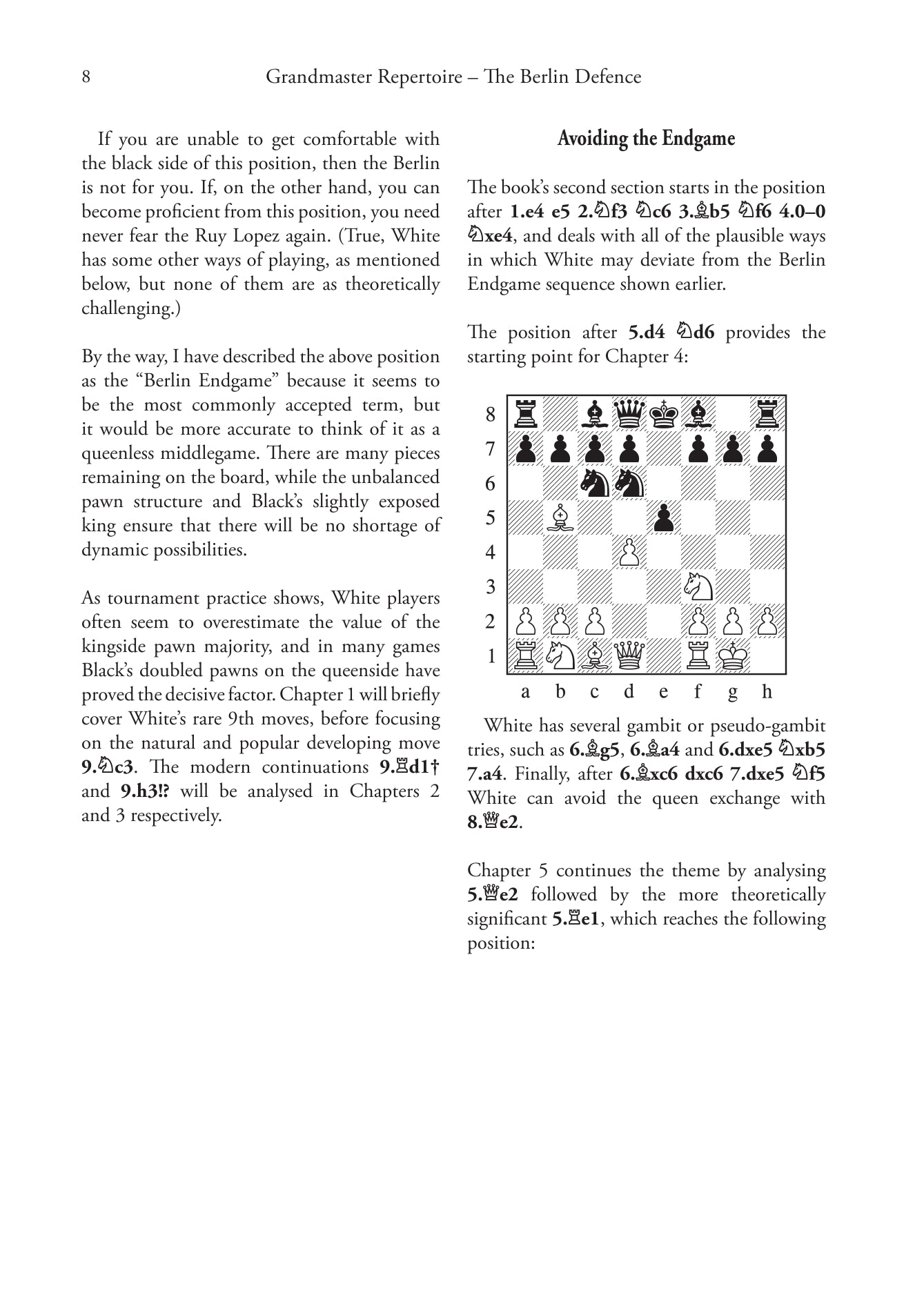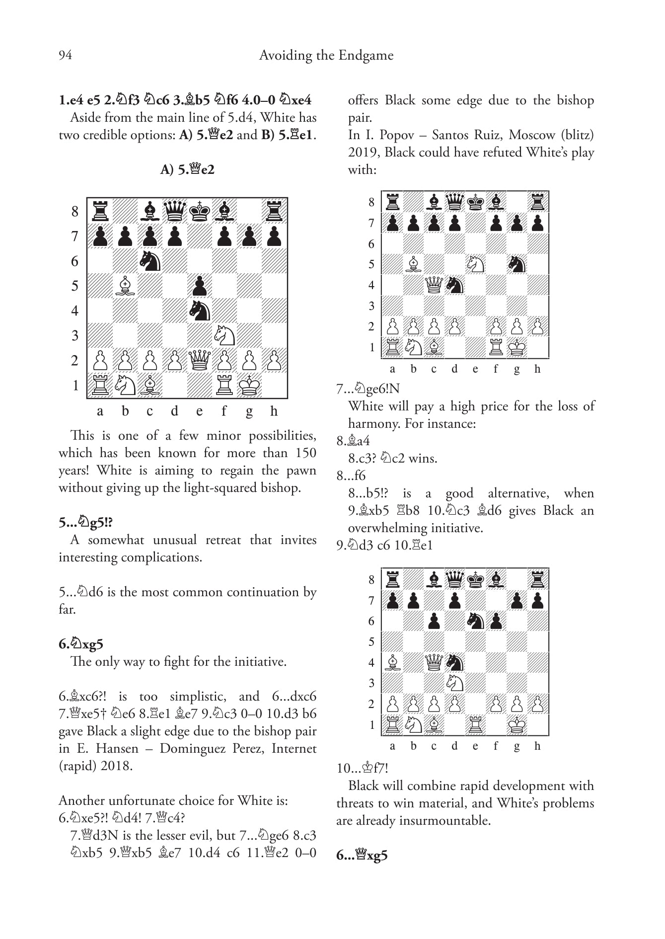 IlGM Michael Roiz presenta un repertorio completo per il Nero dopo 1.e4 e5 2.Nf3 Nc6 3.Bb5 Nf6, offrendo antidoti di prima classe a qualsiasi tentativo del Bianco. Dalla famosa variante Endgame ai tentativi recentemente in voga come 4.d3, Roiz combina un'analisi all'avanguardia con una guida posizionale perspicace.