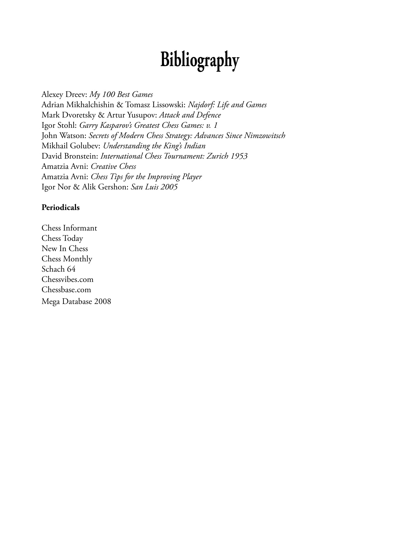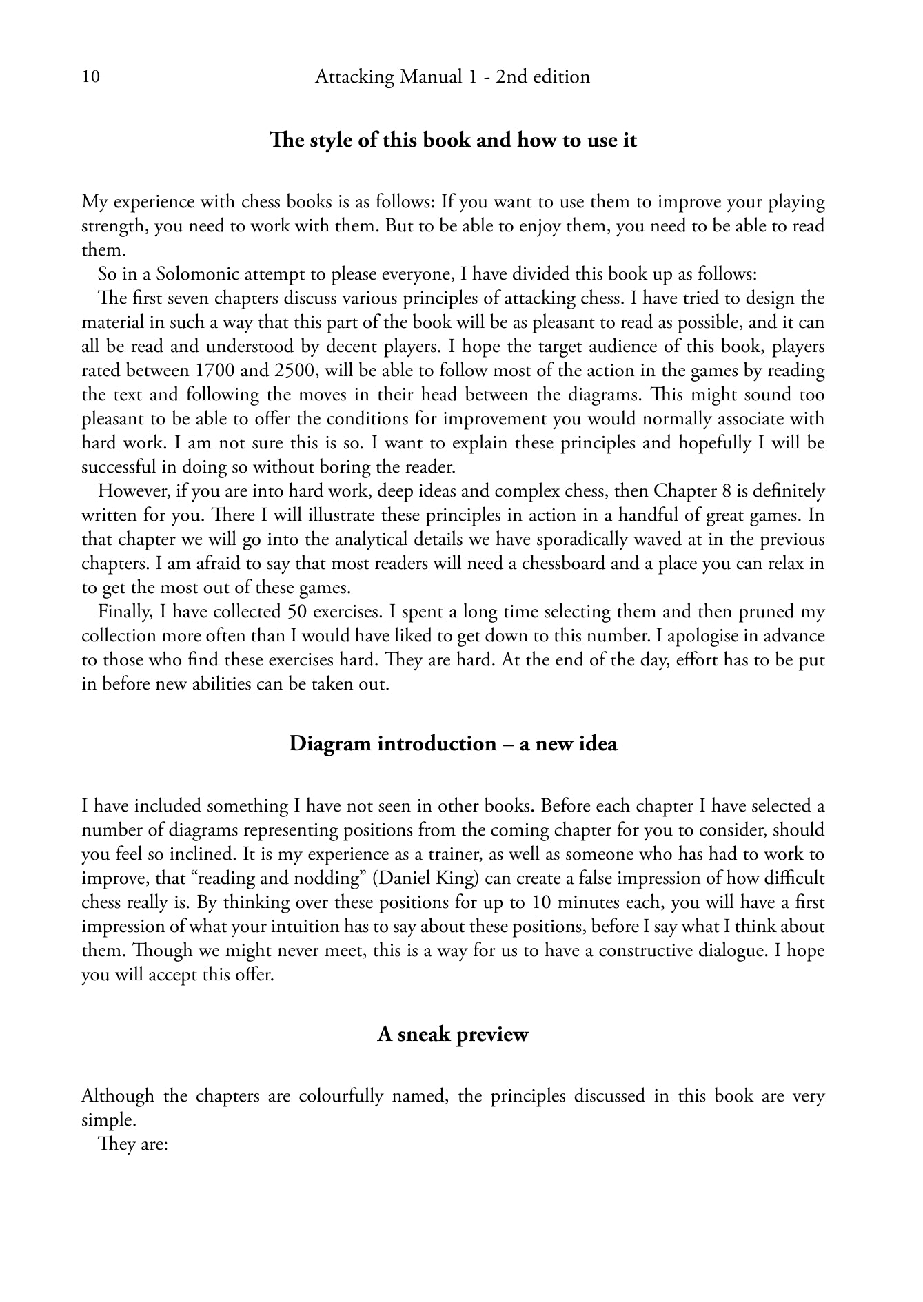 "Il numero di libri pubblicati sul gioco degli scacchi è enorme. Purtroppo pochi di questi sono dedicati all'attacco del re, il che sembra piuttosto strano. L'approccio più ambizioso all'argomento è rappresentato dalla serie di due volumi del GM Jacob Aagaard, Attacking Manual 1 e Attacking Manual 2.