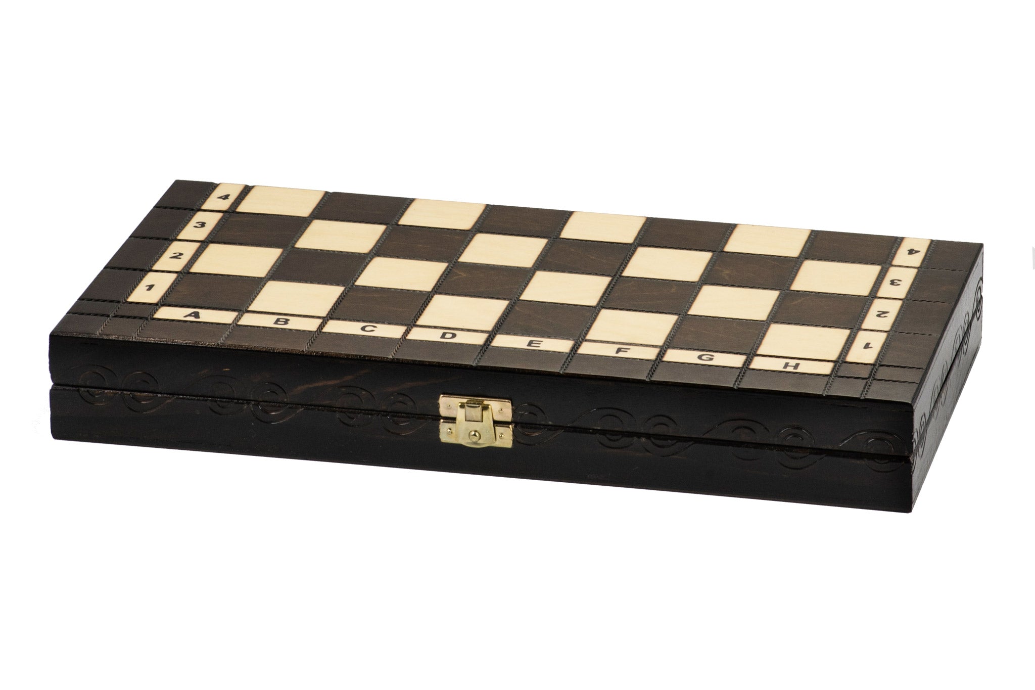 Il set di scacchi olimpici 35 x 35 cm, grazie alle sue dimensioni universali, può essere utilizzato sia come set di scacchi fisso che per i viaggi.
