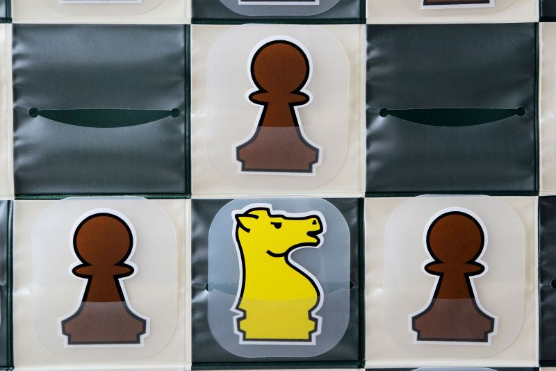 - Il set è composto da una scacchiera, da carte in plastica raffiguranti i pezzi di scacchi (32 carte + regine aggiuntive + 6 carte stella aggiuntive da utilizzare durante l'apprendimento) e da una borsa (custodia) per riporre e trasportare l'intero set.