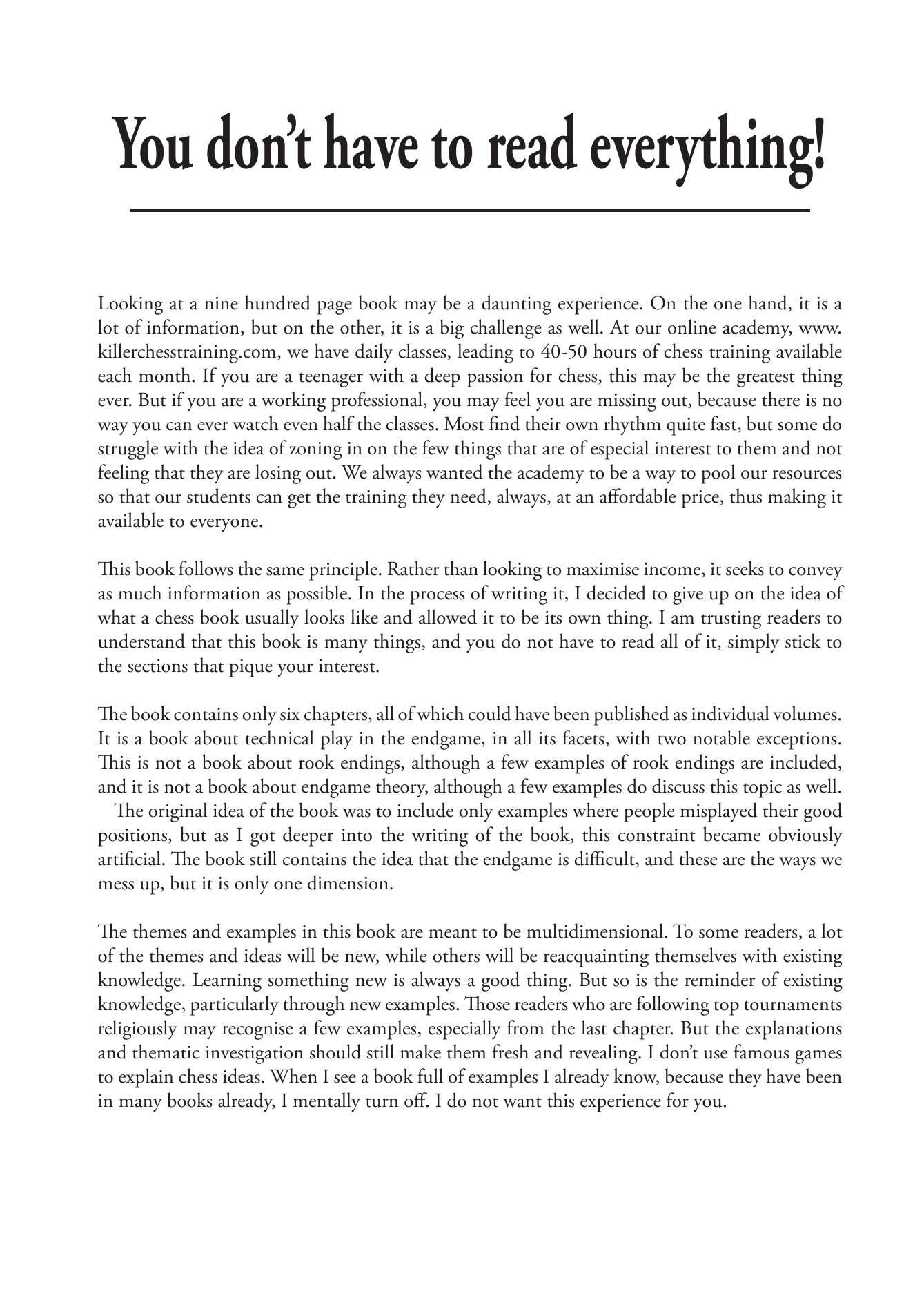 In un sondaggio sui luoghi comuni più odiati negli scacchi, il vincitore è stato: il resto è una questione di tecnica. Questo libro tratta una delle poche cose che gli scacchisti odiano ancora di più: perdere una posizione vincente. Se non avete mai perso una posizione vincente, questa è l'occasione per vedere come si fa. Se non siete nuovi all'infelicità di rovinare ore di duro lavoro in pochi minuti, A Matter of Endgame Technique vi offrirà la seconda migliore felicità: la sfortuna degli altri. Ma soprattutto, vengono studiati e spiegati con attenzione gli schemi di fondo su come e perché giochiamo male gli endgame vincenti, e come evitare questi errori in futuro.