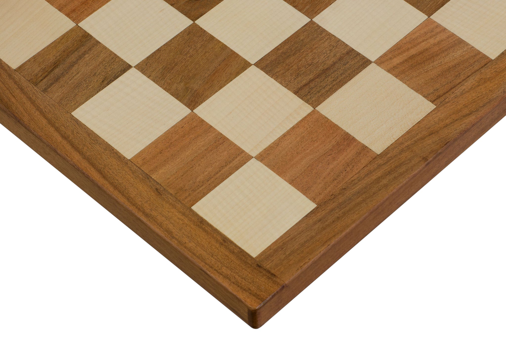 Un'esclusiva scacchiera in legno di acacia indiana e bosso. La scacchiera è di ottima fattura, splendidamente lucidata e piuttosto pesante. Le dimensioni del campo della scacchiera sono 50 x 50 mm.