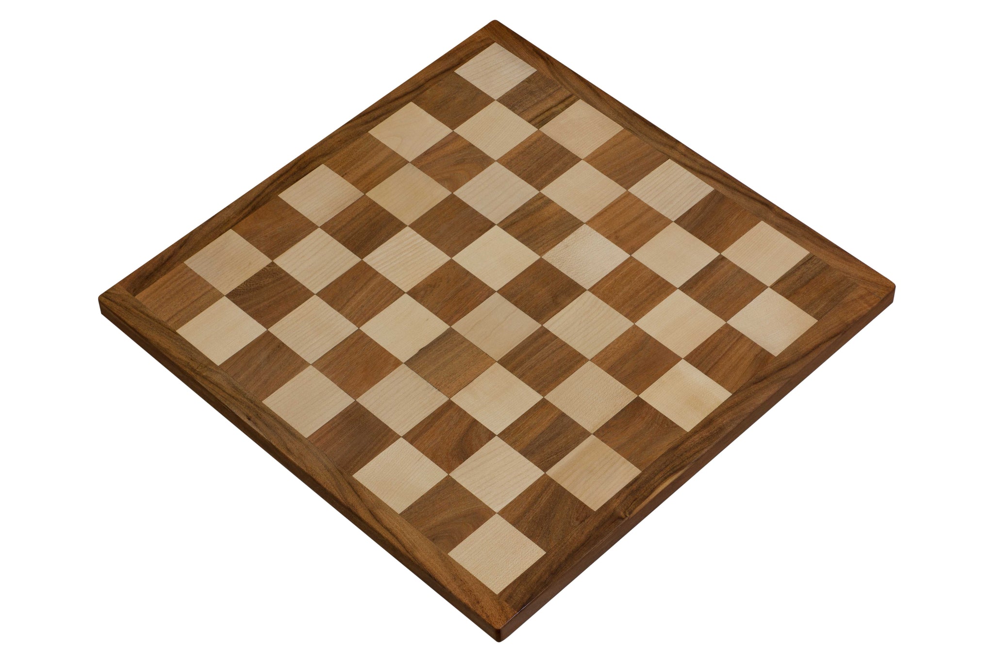 Un'esclusiva scacchiera in legno di acacia indiana e bosso. La scacchiera è di ottima fattura, splendidamente lucidata e piuttosto pesante. Le dimensioni del campo della scacchiera sono 55 x 55 mm.